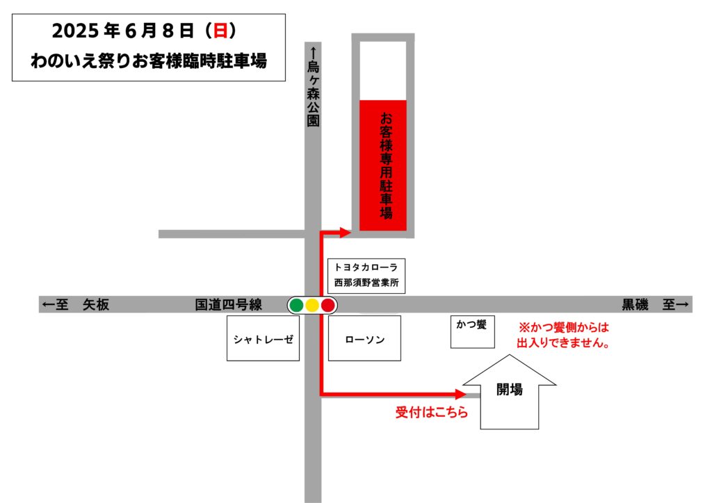 お祭りにご来場の際は、必ずお客様臨時駐車場をご利用ください。