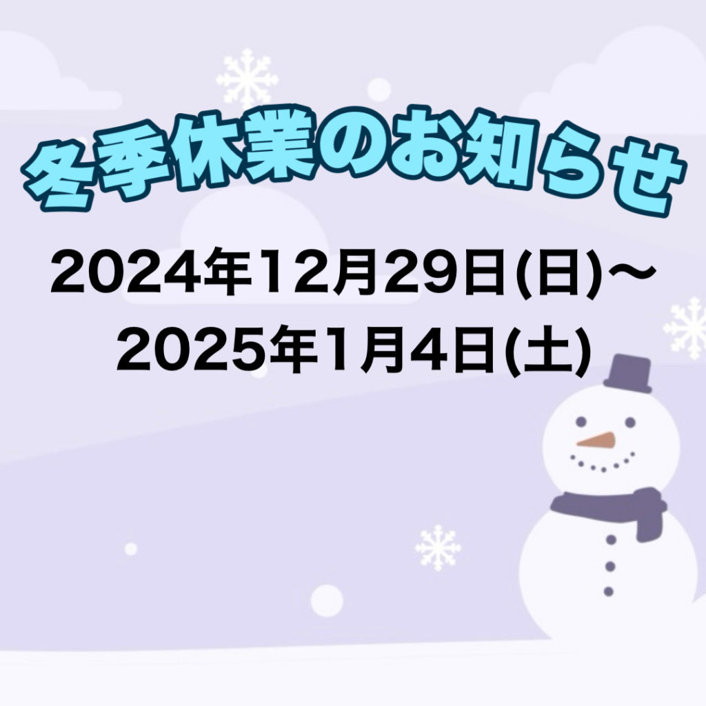 2024年12月29日(日)~2025年1月4日(土)までお休みとなります。